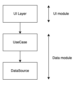 それぞれのレイヤーにおいて複数のクラスが関わってきますが、今の所Domain LayerにはUseCase、Data Layerにはプリミティブなデータ操作を提供するDataSourceしか定義されていません。先日うめもりさんが書いた記事やGoogleのドキュメントにはRepositoryの存在が予見されていました。しかし、チームでの話し合いの元、今はUseCaseとDataSourceの中間の存在を定義しないという結論になりました