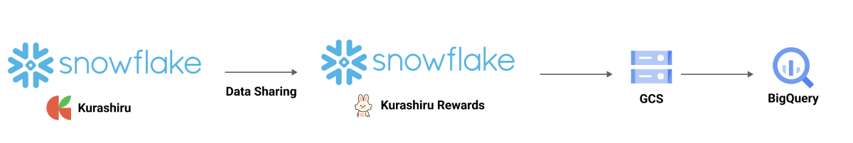 Snowflake(クラシル) -> Snowflake(クラシルリワード) -> Google Storage(クラシルリワード) -> BQ(クラシルリワード)